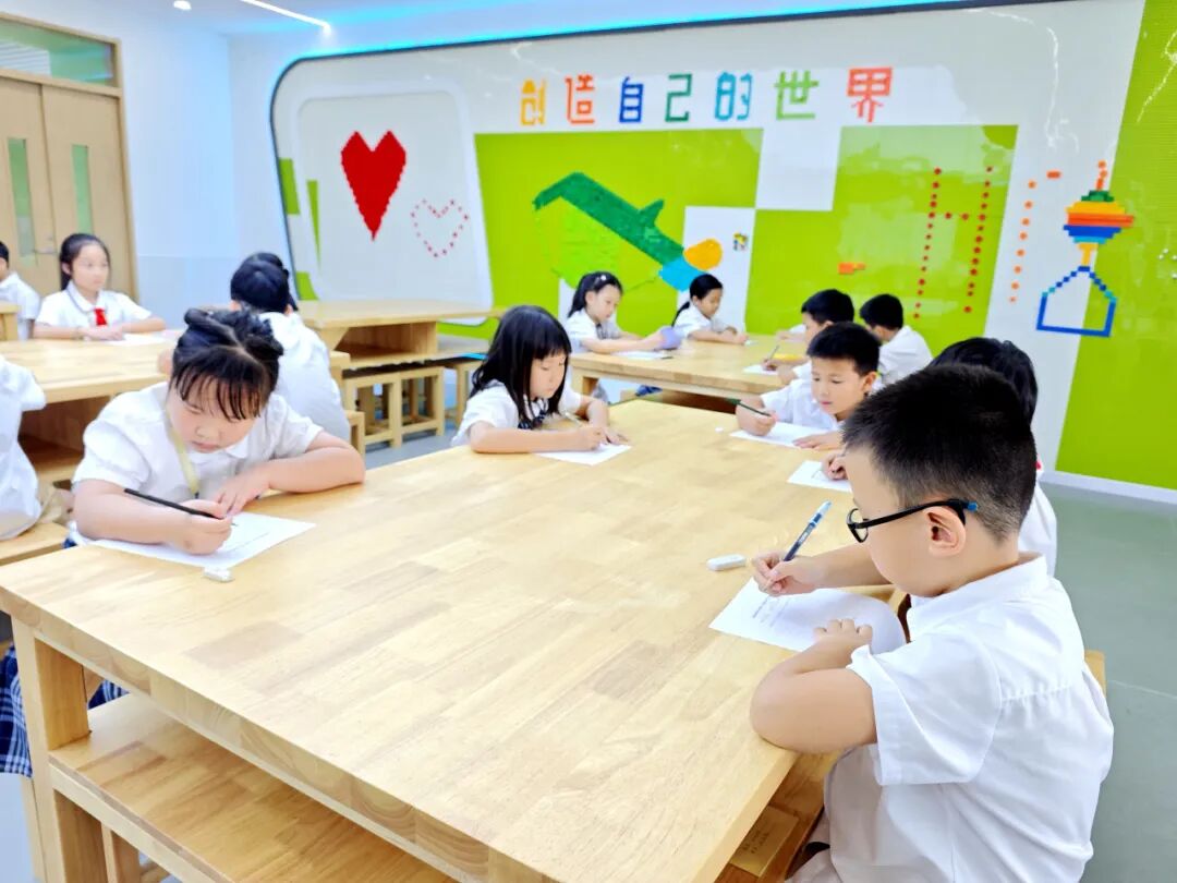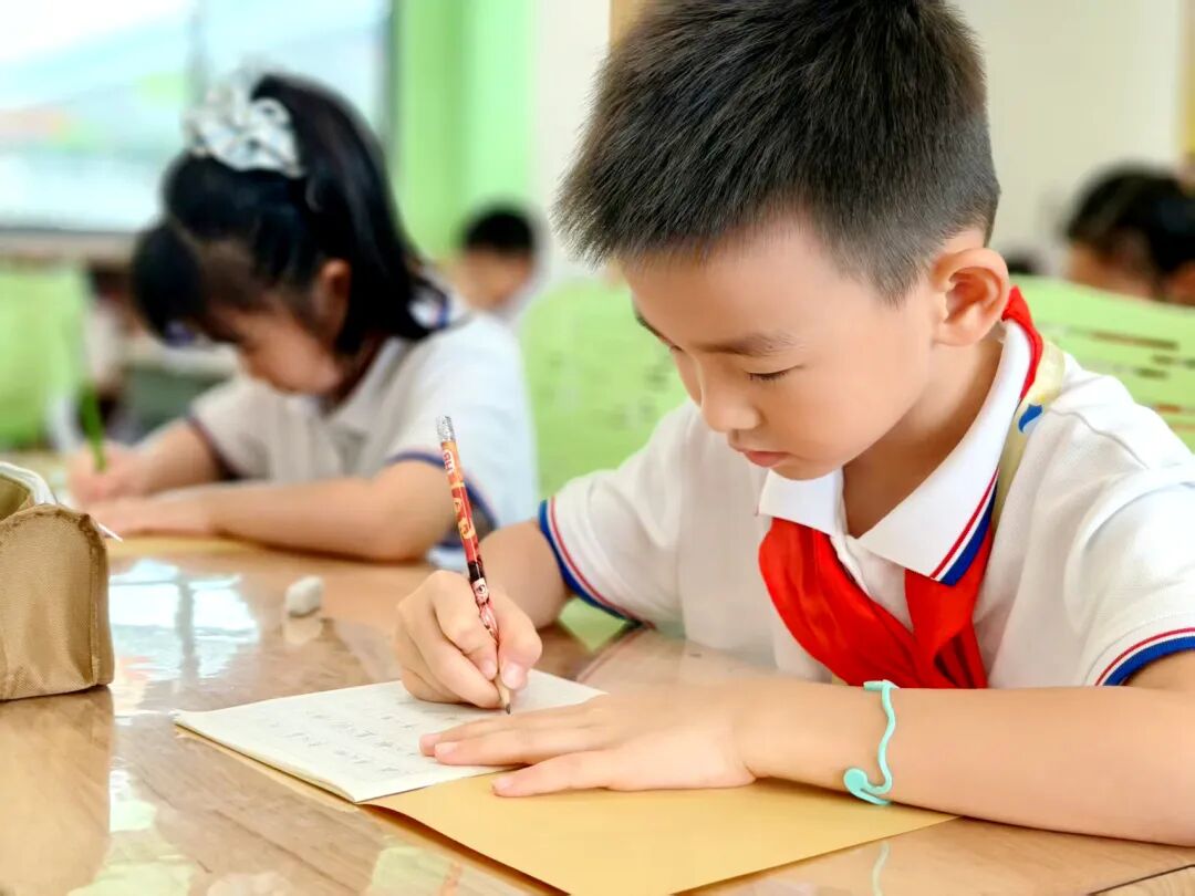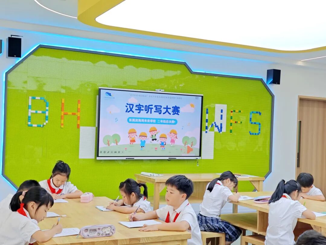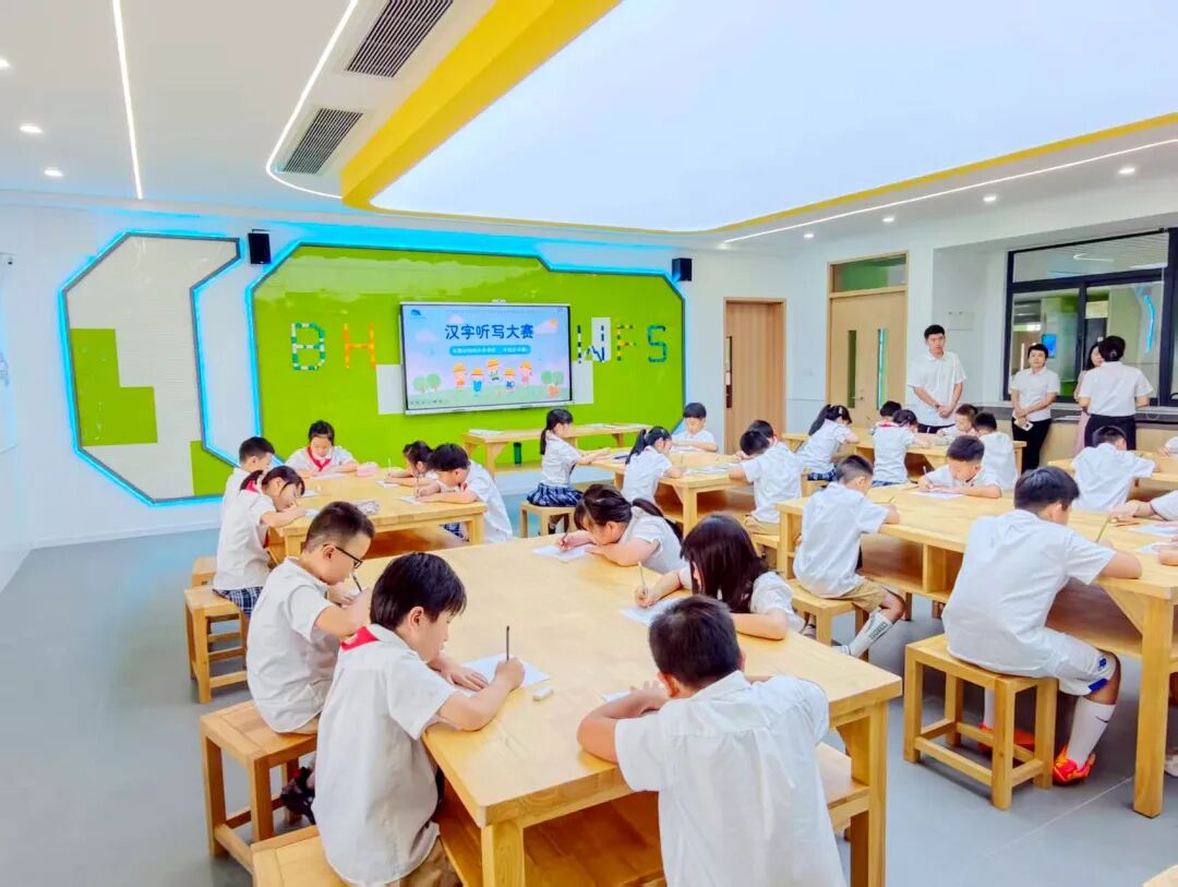伴随着标准清晰的普通话录音在室内回荡,孩子们凝神执笔,让一个个汉字在纸端翩然绽放。本次听写特别融入了课外拓展词语,以及生活中常见的词语,为比赛增添了新的挑战与趣味。