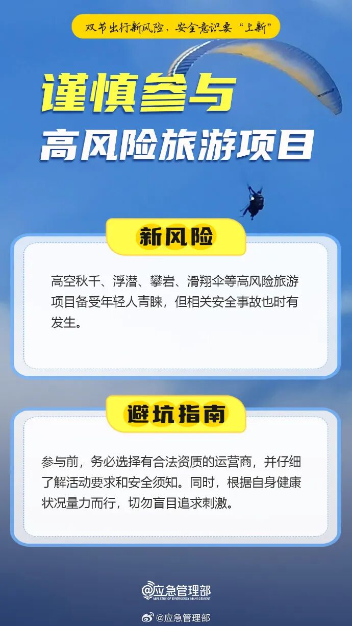 近年来,旅游出行出现了一些新方式、新业态,也随之带来了一些新型安全风险,请收好这份出行安全新提示。