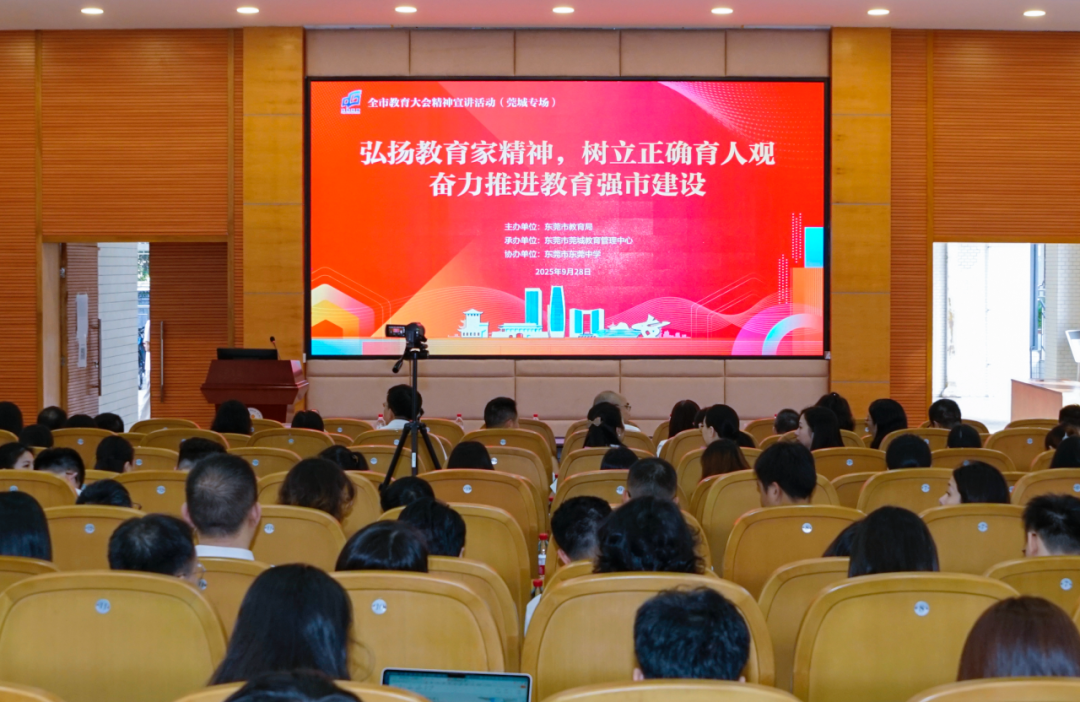 9月11日,东莞召开了全市教育大会。大会在全市上下引起了强烈反响,教育系统迅速掀起了学习贯彻的热潮。为了把学习贯彻引向深入,进一步全面、完整、准确地领会大会精神,进一步凝心聚力推进教育强市建设,进一步推动大会精神转化为东莞教育高质量发展、办好人民满意教育的实际成效,市教育局组建了市镇两级宣讲团,以“弘扬教育家精神,牢固树立正确育人观,奋力推进教育强市建设”为主题,开展覆盖全市教育系统的宣讲活动。