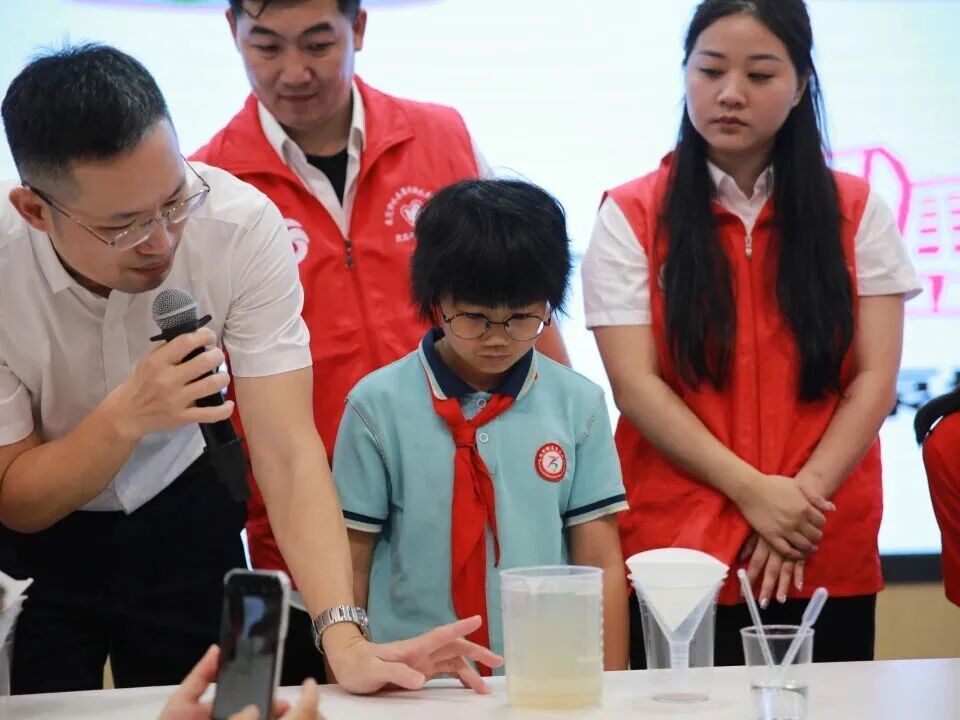 为同学们筹备的首场校外实践活动,由学校联合中国建筑第八工程局有限公司南方公司共同组织。在“供水大学堂”里,一群“小小科学家”正亲手操作水质净化实验,为一滴水的奇妙“旅行记”发出阵阵惊叹;木工建筑馆中,另一群学生专注地打磨、拼接木材,当亲手完成的木工作品逐渐成型,他们也真切体会到了什么是“工匠精神”。