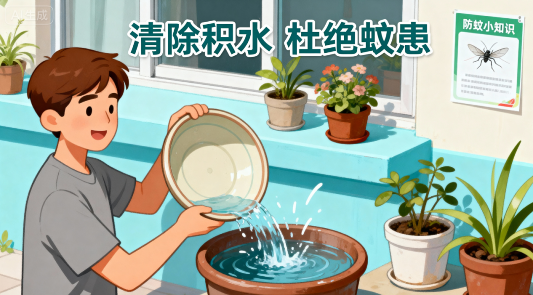 返程后要及时清除家中各类积水,翻盆倒罐。定期为水养植物换水清洗(至少每3~5天一次),避免蚊虫孳生。