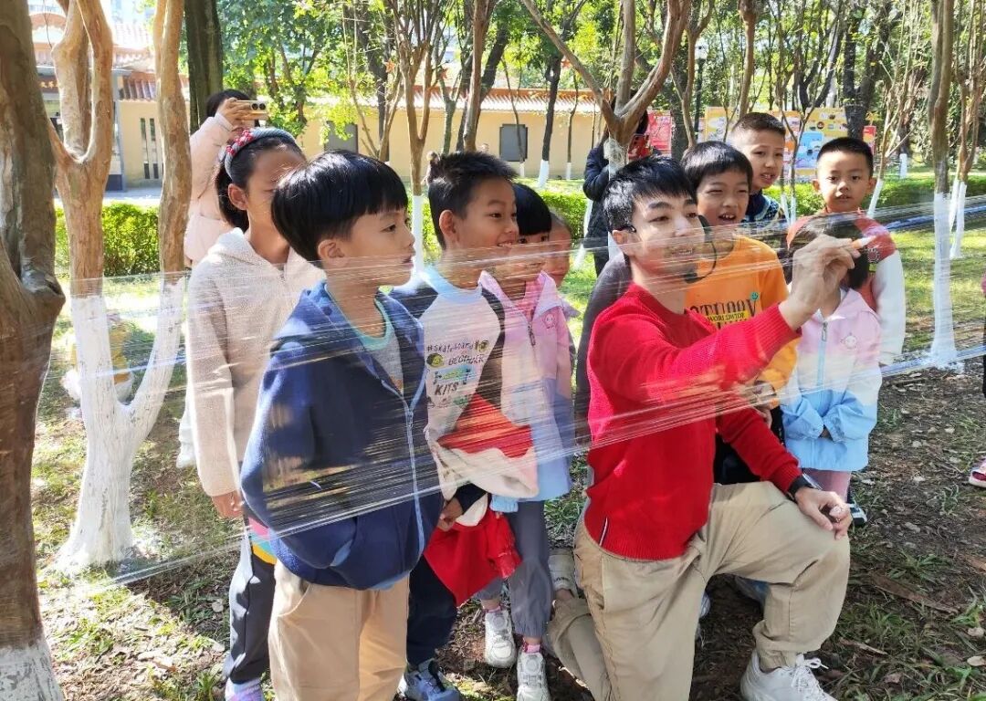 绘本故事分享结束后,活动进入自然艺术创作环节。在工作人员的耐心引导下,孩子们手持五彩画笔,将在长安公园内亲手捡拾的落叶、花瓣等自然素材巧妙融合,在特制透明膜上尽情挥洒创意,完成了一幅幅满含童真、洋溢着自然气息的艺术作品。