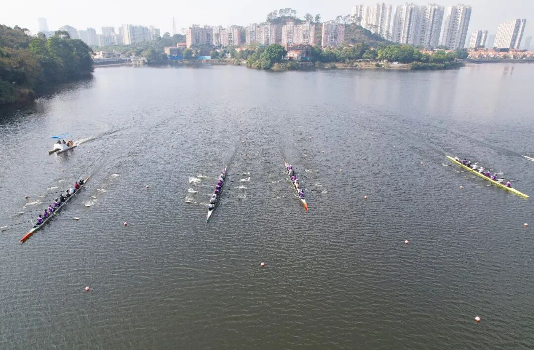 12月28日,“三校联航,共济迎新”水上联谊赛在长安镇莲花山风景区水上活动中心激情开赛,北京大学深圳研究生院、南方科技大学、深圳理工大学(中国科学院)三所高校的赛艇健儿齐聚于此,共赴一场水上竞技之约。