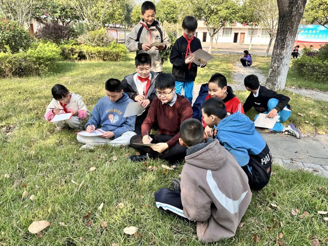初到沈所镇中心小学,张鹏便深入调研,发现当地学生虽然生活在如画的自然风光中,但对美育的感知尚处于启蒙阶段。针对这一情况,他并没有局限于教室内的临摹,而是大胆创新,将课堂搬到了户外。