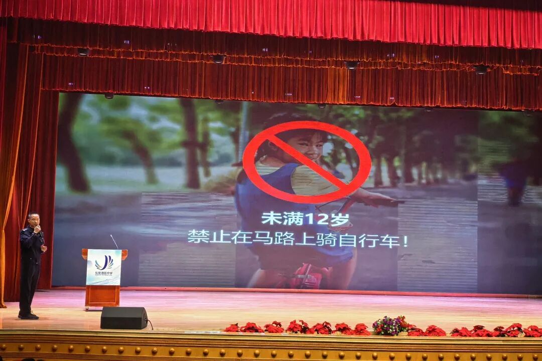 活动现场,宣讲员创新采用案例剖析、互动问答、情景模拟、播放警示教育片等多种形式,生动地向学生普及交通安全知识。从过马路牢记“一停二看三通过”,到乘车全程系好安全带,每一项交通安全规则都结合真实事故案例,让学生直观感受违规行为的危害。针对未成年人骑行安全,宣讲员重点强调了未满16周岁不得骑电动自行车、骑行须佩戴安全头盔、禁止逆行及违规载人等关键要求。