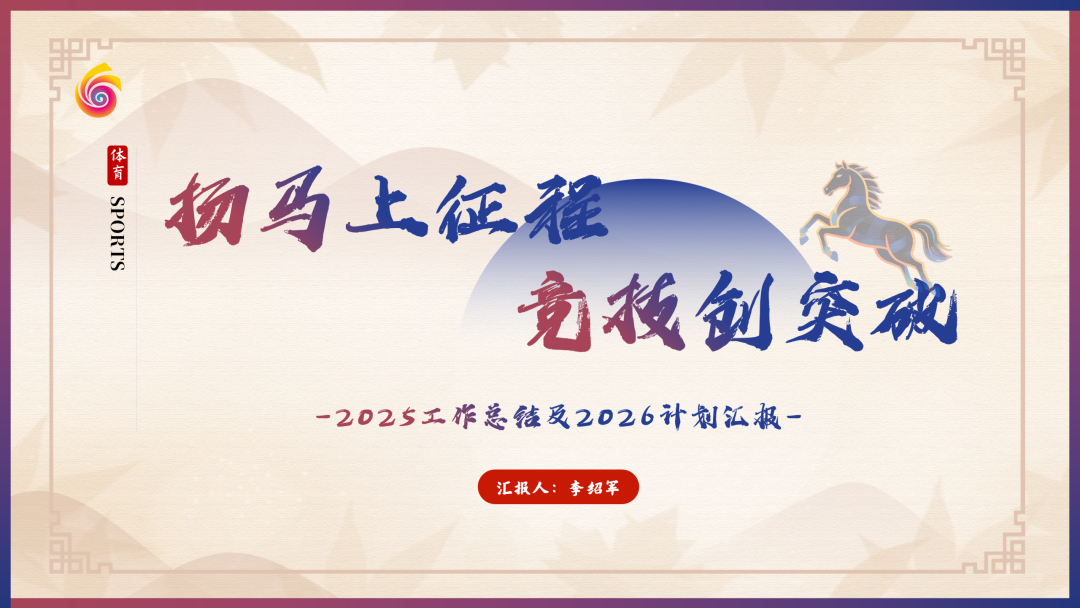 陈建庭同志以《马踏新程,再跃高峰》为题介绍了过去一年竞技体育与群众体育的工作成果,提出接下来将强化体教融合,进一步提升长安竞技体育水平。