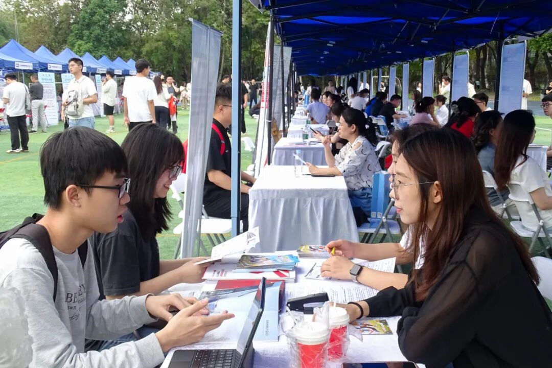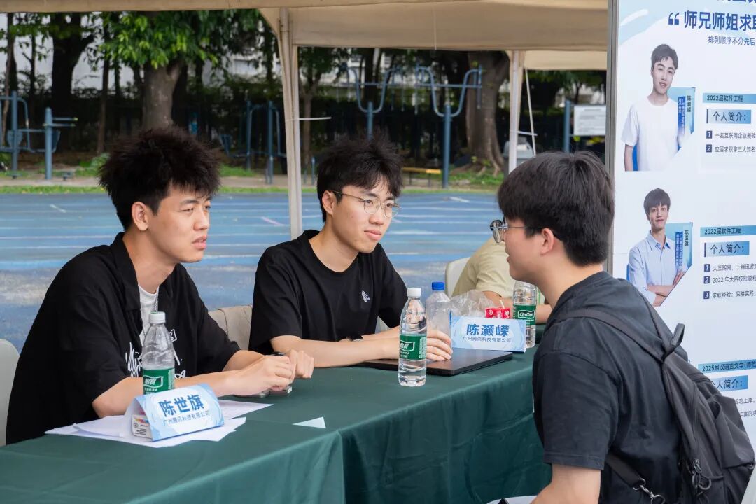“师兄师姐求职说”帐篷则将线上分享栏目搬到招聘会现场,邀请往届优秀学长学姐回校,和学弟学妹们面对面分享真实职场心得与求职经验。