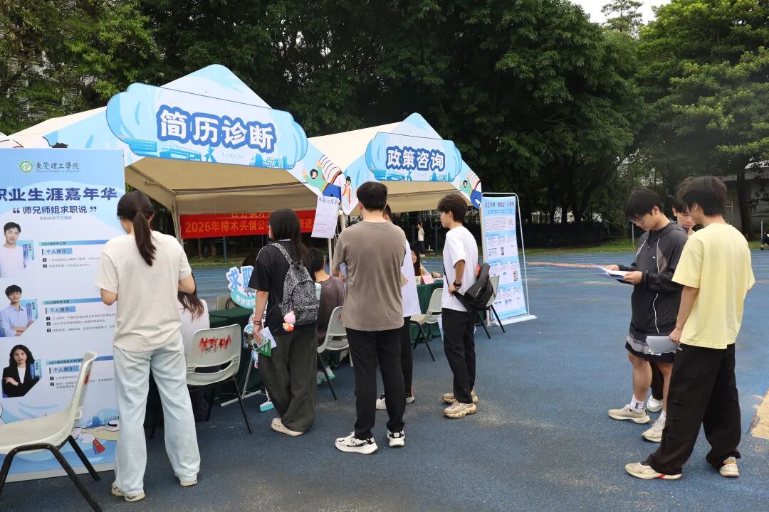 其中,“政策咨询”帐篷中,人社部门工作人员解读东莞高校毕业生就业创业政策。“简历诊断”帐篷里,专业导师为同学们一对一优化简历,低年级同学也可提前来诊断。