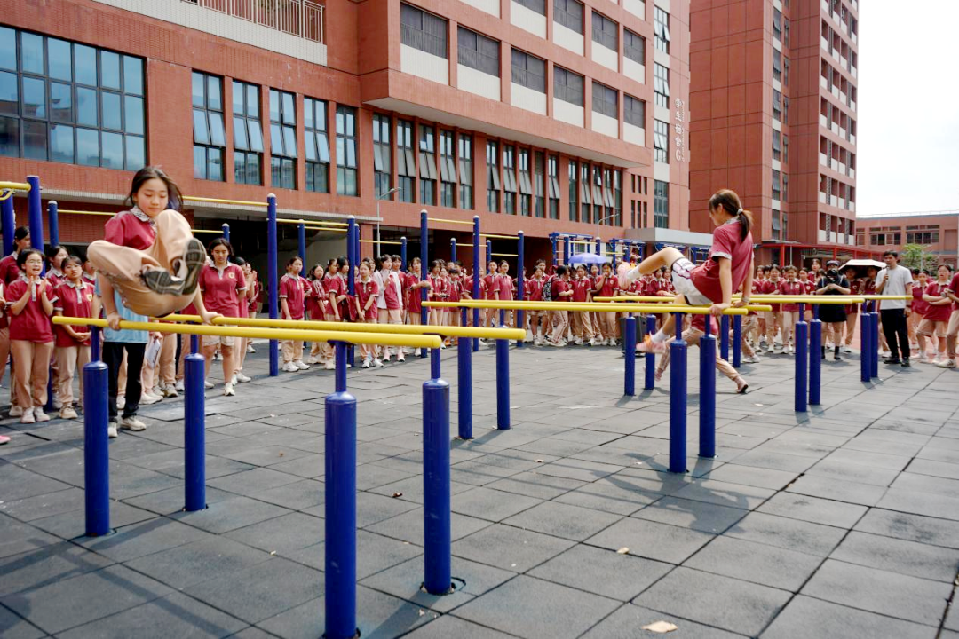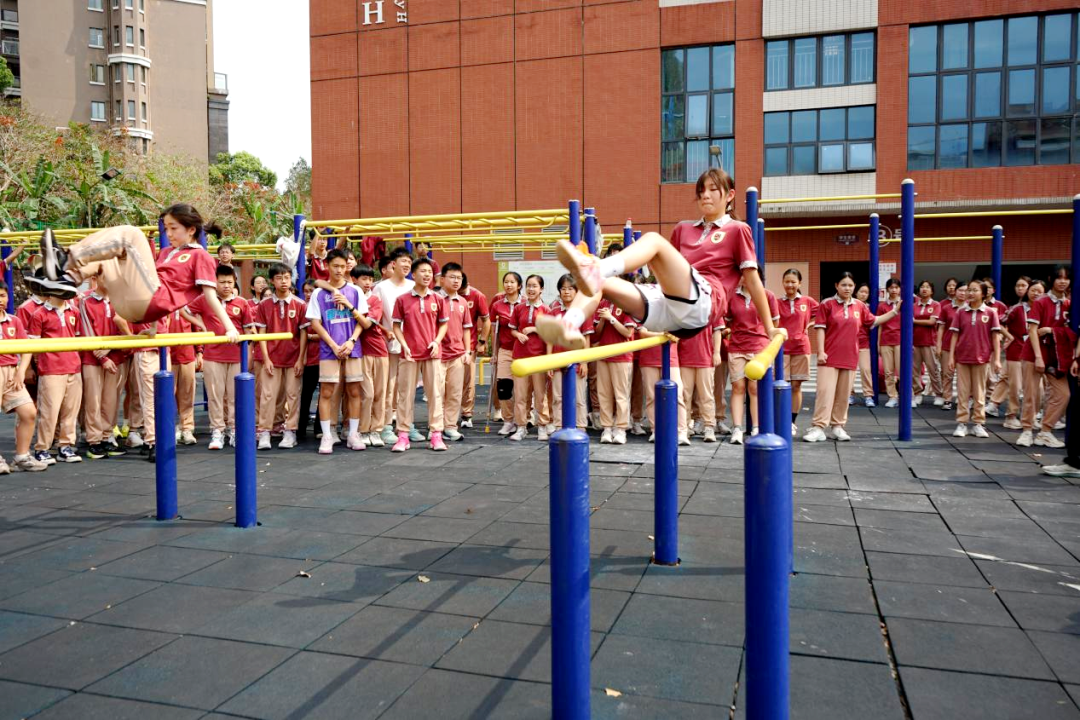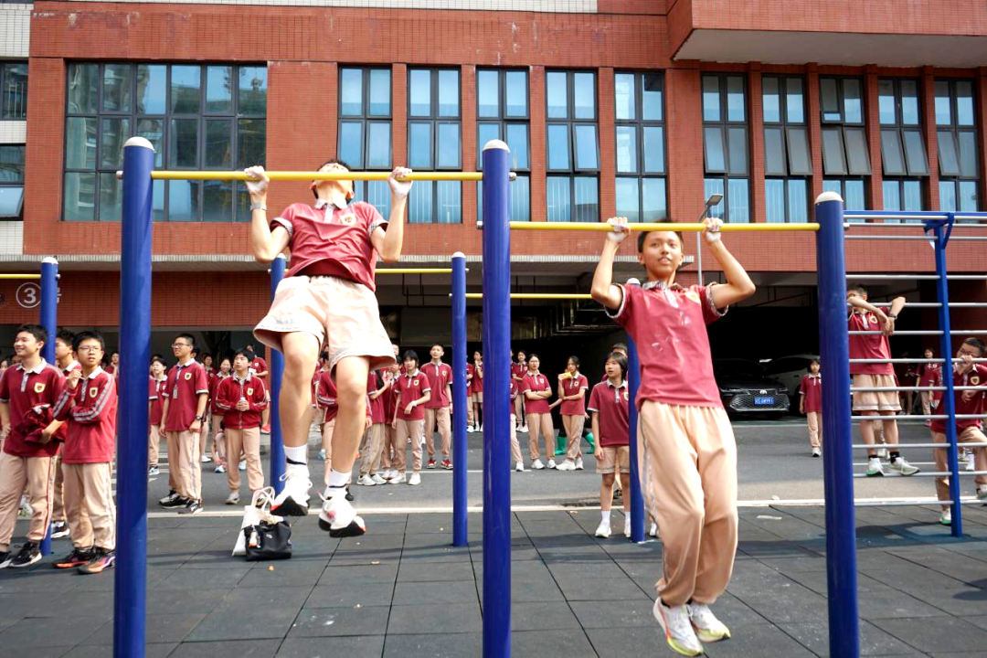 从小学部的足球趣味赛,到初一的“袋鼠跳”师生同乐,再到此次初二“单杠王”“双杠王”挑战赛,东莞外国语学校正以“班超”为契机,让体育回归育人本真。杠上滴落的汗水,场边嘶哑的加油,赛后相拥的笑容——这些鲜活的瞬间共同拼凑出“健康第一”最生动的注脚。在这里,每个孩子都有机会站上赛场,每一次勇敢的尝试都值得被喝彩。而这,正是“人人出彩”最朴素也最有力的回答。