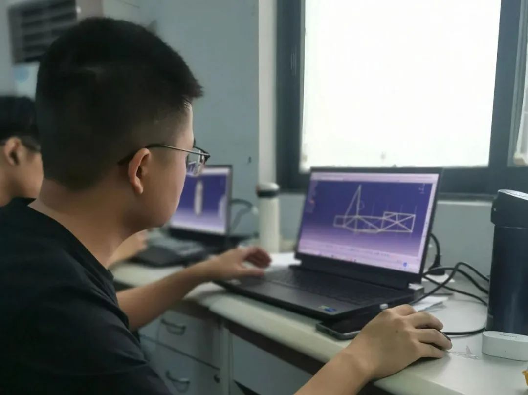 因为都没有实操经验,林振锋三人只能一边积累理论,一边尝试实践。他们依靠网上教程,尝试着绘制赛车图纸、3D打印模型、搭建车架……小小的房间里,三位伙伴怀揣着那个遥远又确定的梦想,互相扶持着越过了初期的无数困难,“造车”这件事也渐渐显露出落地实现的可能性。