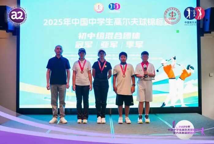 在初中组混合团体比赛中,由侯凯博、洪廷恩、杨晨语、从琳琳四位同学组成的翰林实验学校代表队团结协作、沉着应战,凭借稳定的发挥和默契的配合,最终夺得季军。这是该校继今年7月在广东省中小学生高尔夫球锦标赛中包揽多个组别团体一等奖后,在国家级赛事中取得的佳绩。