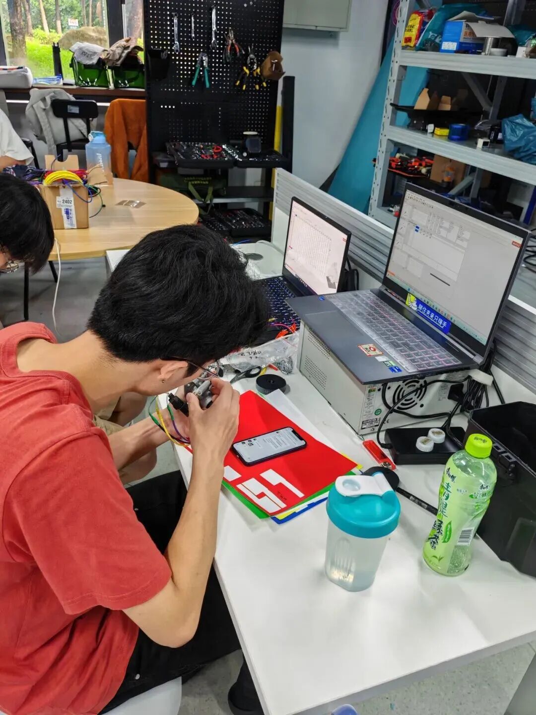 没有基础、没有伙伴、没有场地、没有资金,一切只能靠自己。车队初创时的3名成员,利用暑假待在学校实验室3平方米的小房间里,依靠网上教程,从零开始学习软件安装和绘图,尝试3D打印模型、搭建车架。