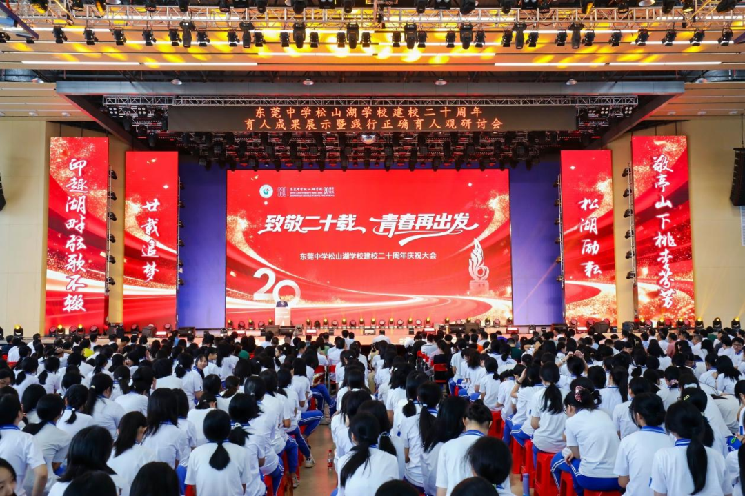 “入学第一年,学校很多设施还在建设中,环境崭新而充满未知。比如我住过的女生宿舍,楼下的树苗当时只有两层楼高,如今已长成参天大树。学校也如这些树木一般,不断茁壮成长、越办越好。”2005年创校首年入读松湖莞中的校友胡紫君深情表白学校,她直言在松湖莞中度过的六年时光,奠定了一生底色,也赋予了她走出校园、乘风破浪的勇气,“祝愿母校20岁生日快乐,成为中国基础教育的领跑者。”从庆祝大会到学术研讨,从精彩的成果展演到温情的校友重逢,松湖莞中用一场精彩纷呈的系列活动,为二十岁生日刻下了深刻的印记。站在新起点,学校将秉承“为学以真,立身以诚”的校训,青春再出发,以更加坚定的步伐,迈向下一个更加辉煌的二十年,继续为东莞教育的高质量发展贡献力量。