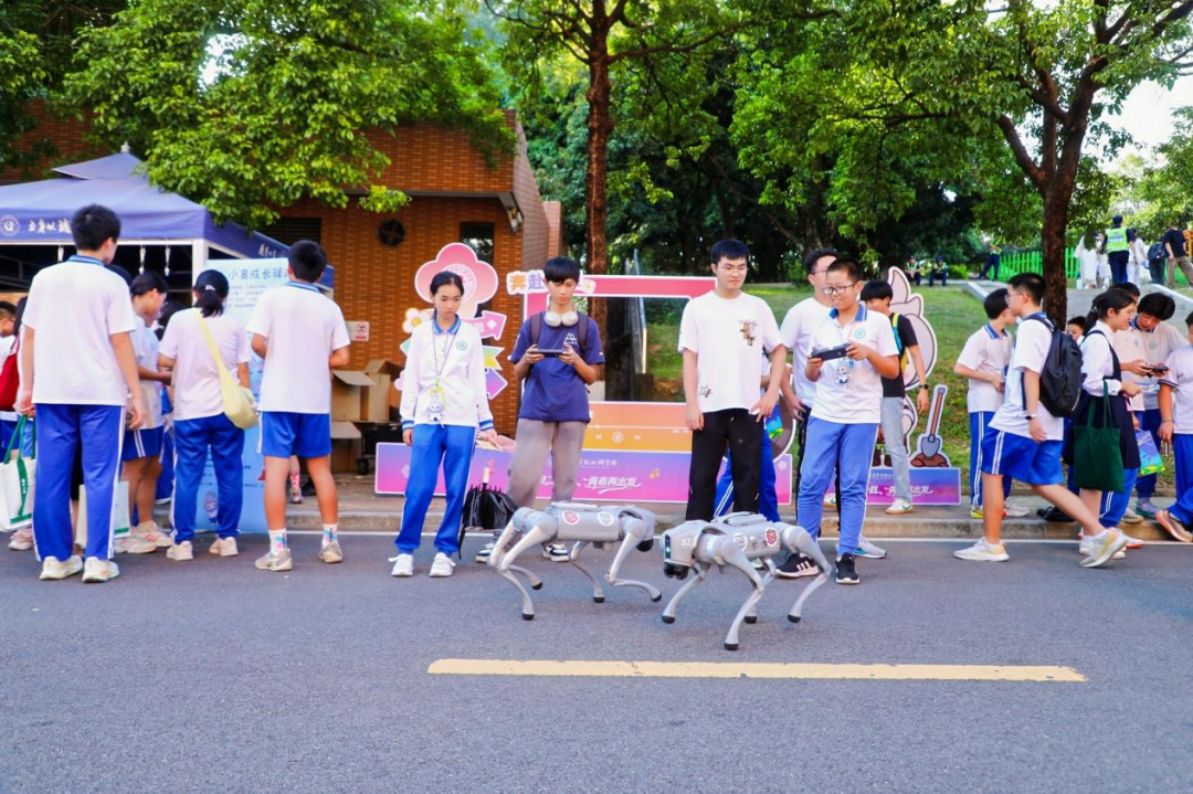 主题游园活动设置了体育、艺术、科技、劳育等多元互动体验区,日面观测、机甲互动、墨匣藏趣等精彩纷呈的项目让每位参与者乐在其中。同时,2015届“校友回家日”活动温情上演,校友们重逢叙旧,重温同窗情、再话师生谊。