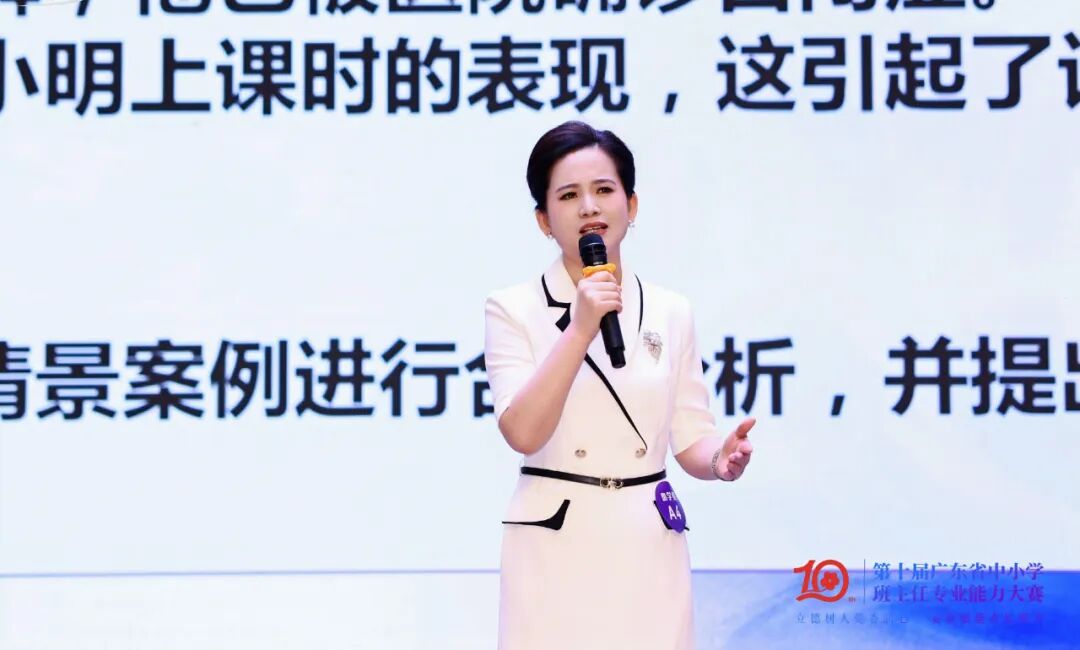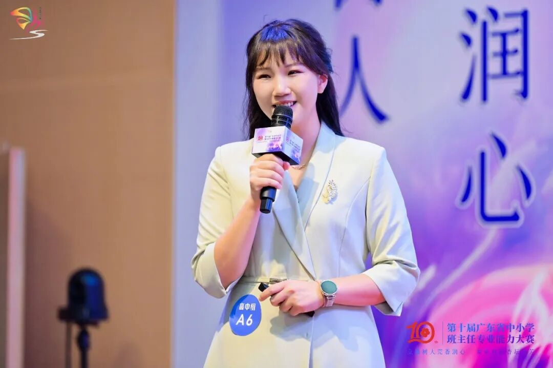 获奖感言:非常荣幸能代表东莞市参加广东省第十届班主任能力大赛,并获得一等奖。这份荣誉不仅属于我个人,更属于背后支持我的整个备赛团队。这份荣誉,是肯定,更是前行的鞭策。我将把这次大赛中的所学、所思、所悟,带回我热爱的班级。我始终相信,教育是“成”与“长”的艺术,班主任要给予孩子“成”的力量,尊重他们“长”的节奏,用心耕耘,用爱收获。未来,我将以“教育家精神”为灯塔,坚守立德树人的初心,深耕三尺讲台,全心全意陪伴学生成长,为东莞基础教育的高质量发展,贡献自己的光和热。