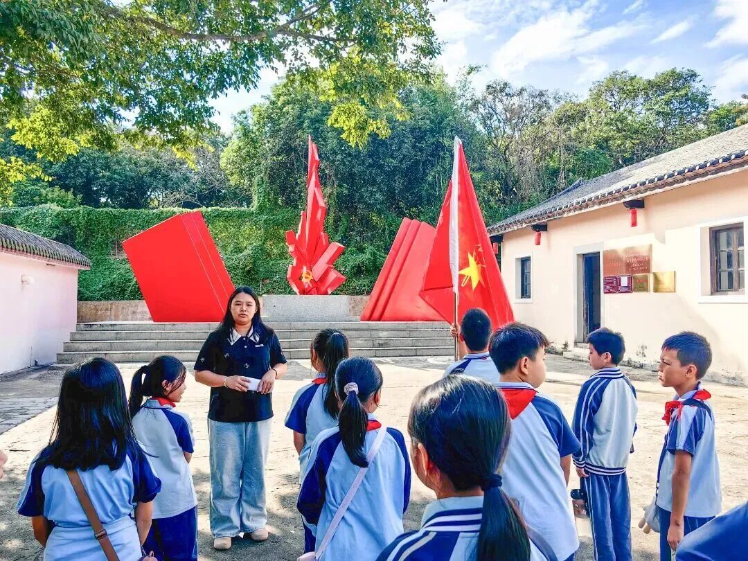 在活动现场,土生土长的大队辅导员韩杏娜老师以“本土人讲本土史”的独特视角,将儿时听闻的革命故事与历史史实相融合,为学生们生动讲述东江纵队的抗战历程。她依托旧址内保存的枪械、文献、生活用具等实物展品,将革命先辈在艰苦环境中坚守训练、奋勇抗敌的场景鲜活再现,让红色历史不再是书本上的文字,而是可触摸、可共鸣的生动教材。