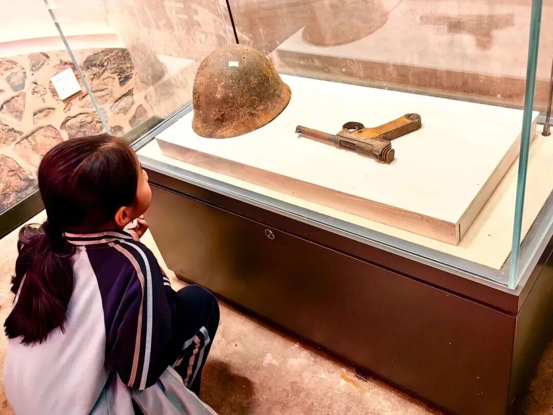 “我们村后山上至今还保留着当年的战壕遗址”,韩杏娜老师巧妙结合铁场村的地理环境与民俗风情,将红色历史与本土文化紧密相连。学生们在参观过程中专注聆听、积极提问,在互动交流中深化对红色历史的认知与理解。