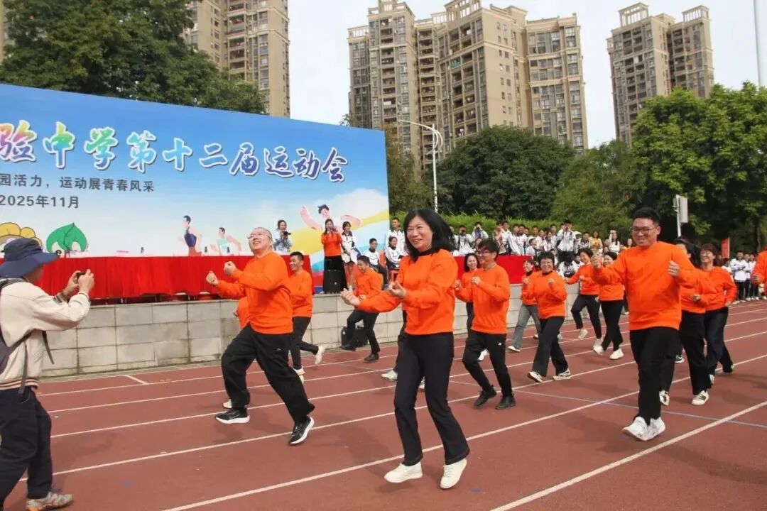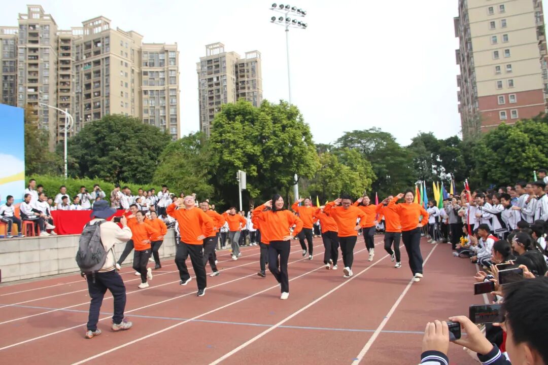 赵卓在校运会开幕式上带领老师们表演《库里之歌》