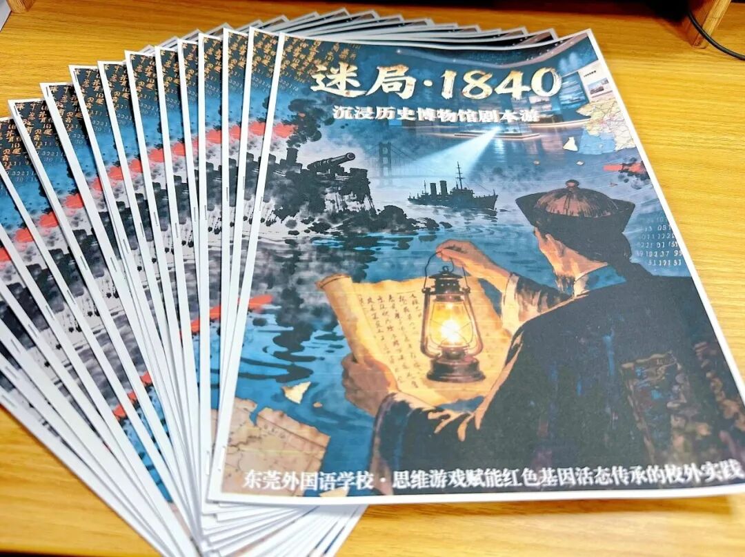 《迷局·1840》则构建了一场跨越时空的“历史解谜”。学生扮演“晚清观察员”,在八个展厅中通过破解坐标、拼合密文,亲历鸦片战争的屈辱与挣扎。手册融入军事布防分析、条约条款辨析等跨学科任务,在沉浸式推演中揭示落后就要挨打的历史警示。最终,学生完成任务,在百字密文矩阵中拼出关键词,完成一场跨越百年的精神对话。