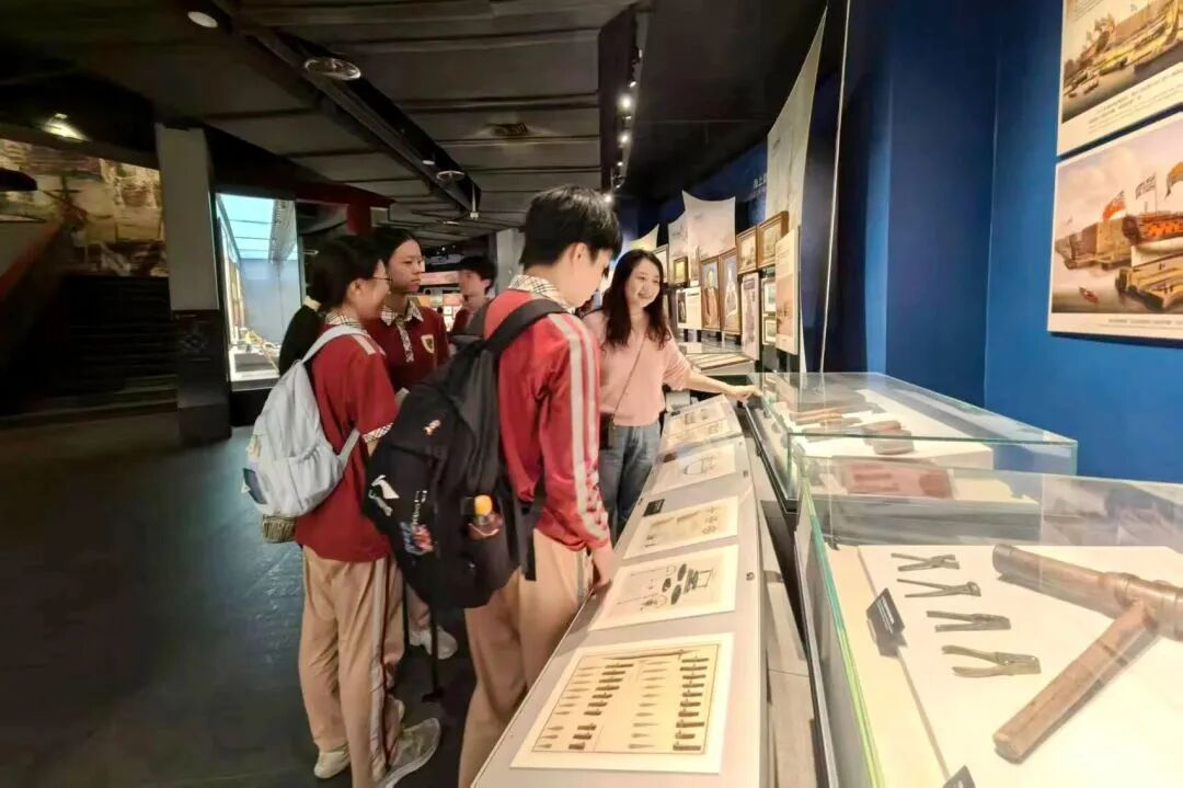 海战博物馆里,《迷局·1840》的“穿越之旅”正式开启。教师化身“历史迷局叙事者”,引导学生在虎门炮台沙盘前分析布防弱点,在《南京条约》复原文本前辨析条款危害,在“列强瓜分图”前感受国土沦丧之痛。馆内的全息影像、互动火器、复原战船等现代展陈手段,在教师的解读下成为构建历史情境的重要元素。随后,师生走进虎门沙角炮台遗址,直面沧桑古炮、残存墙垣与滔滔江流,亲手触摸历史的温度,聆听这片土地沉默却汹涌的回响。