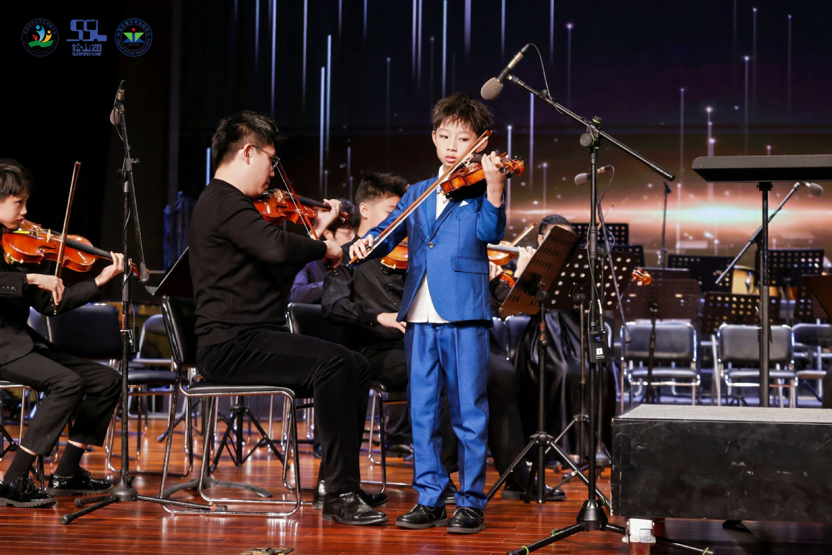 下半场,松湖青少年室内乐团接过舞台,以弦乐合奏《独角兽》的灵动旋律带领观众步入西洋管弦乐的世界。年仅8岁的小提琴手胡凯文带来的《巴赫a小调小提琴协奏曲》独奏,技艺纯熟、台风稳健,赢得满堂喝彩。随后,管乐合奏《世纪序曲》《红日》以现代编曲和昂扬旋律展现青春活力,压轴曲目《音乐之声》与《侏罗纪公园》主题曲则通过恢弘的管弦合奏,将音乐会推向高潮。