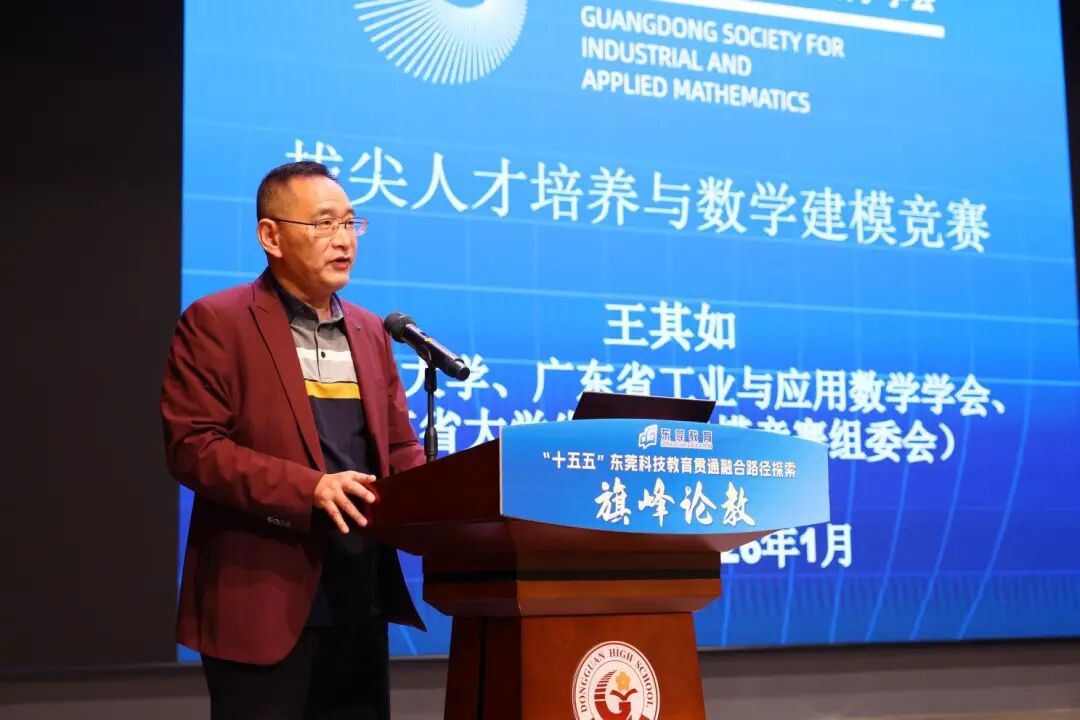 主旨报告环节,中山大学教授王其如以“拔尖人才培养与数学建模竞赛”为题,分享“逸仙模式”经验,强调数学建模连接理论与实践的桥梁作用,并介绍“大湾区青少年数学建模能力挑战赛”,为东莞学子提供高水平学术平台。