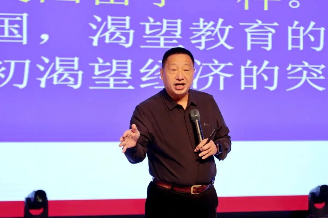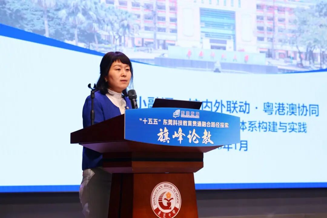 东莞中学校长周剑光分享了学校“一核三维四阶五融”STEM教育体系,以“生态育人”为核心,融合本土资源,通过四阶路径实现五育融合,并从师资、资源、评价三维保障实践落地。未来将继续深化“STEM+”跨界融合,完善课程体系与育人机制。