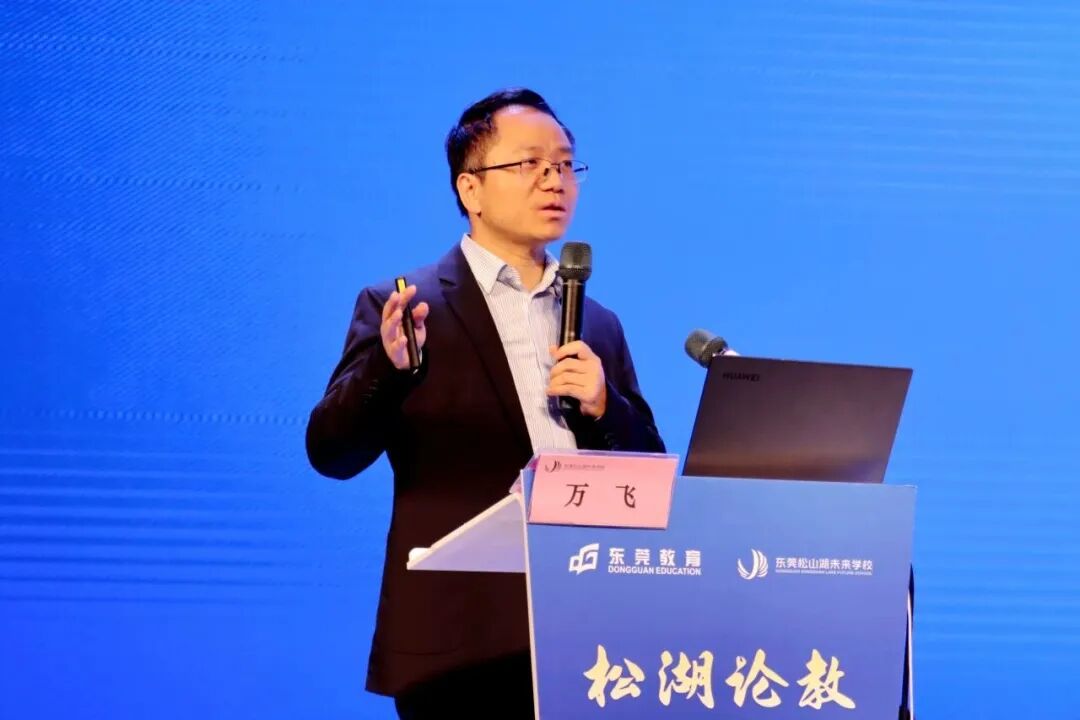 主旨报告环节,多位专家分享了前沿思考。东莞松山湖未来学校教育集团理事长、党委书记万飞以“寻找未来学校的未来”为题,从实践者角度展示学校通过技术赋能与机制创新,在空间重构、课程变革、学习方式革新等方面的成果,为集团化办学提供了可复制推广的模式。