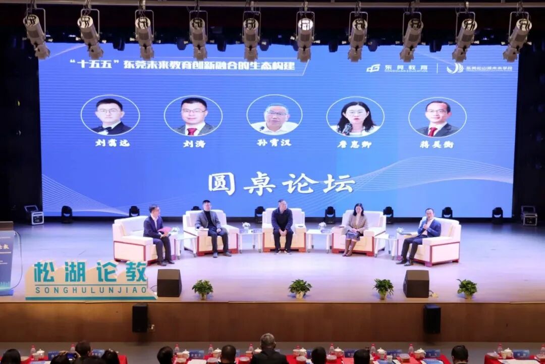 圆桌论坛上,四位嘉宾围绕主题展开对话。东莞松山湖未来学校校长蒋美衡分享学校在理念、课程、技术、治理等方面的融合创新,强调理念引导、体系整合与技术支撑协同发力。大岭山教育管理中心主任詹惠卿指出,AI时代应通过素养目标凝聚共识、多元评价驱动过程、资源整合与校家社协同激发活力,促进每所学校特色发展。塘厦镇教育管理中心主任刘涛关注教育公平与多元选择,提出可通过优化资源配置、助力教师成长、深化评价改革,服务群众对美好教育的期盼。东莞城市学院教授孙霄汉则强调课堂与教师是关键,鼓励教学方法创新,主动适应产业变革,加强思想政治教育。