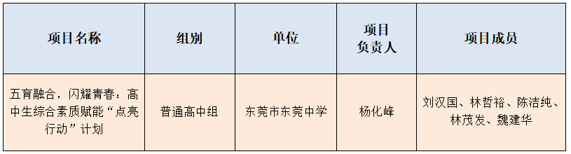 喜报频传,硕果盈枝!近日,2025年东莞市中小学(幼儿园)“五育融合”优秀项目、创新案例正式公布。东莞中学积极响应,将正确育人观有效转化为生动的教育实践与创新行动,共有三个项目脱颖而出、荣获佳绩:“东莞中学‘1-3-5’红色基因传承工程”成功获评优秀项目;“五育融合,闪耀青春:高中生综合素质赋能‘点亮行动’计划” 与 “一座城市的蝶变:五育融合视域下的生态科创育人实践” 双双入选创新案例。这充分彰显了我校在立德树人与融合育人实践中的扎实探索与显著成效,展现了莞中团队守正创新、实干担当的积极风貌。