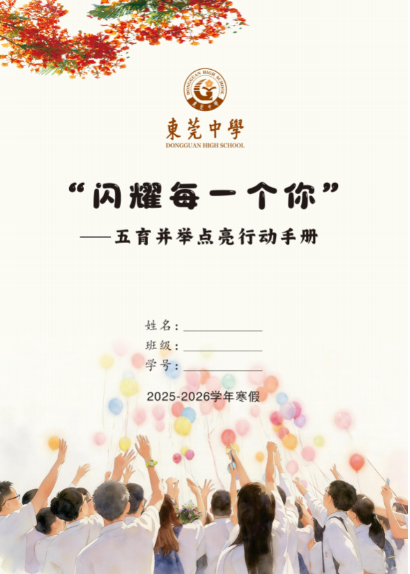 为进一步推动五育融合落地、衔接校内与假期育人环节,德育处于2026年寒假特别编制并印发了《“闪耀每一个你”五育并举点亮行动手册(寒假版)》。该手册结合假期特点,设计涵盖德育感恩、智育阅读、体育锻炼、美育创作、劳育实践等多维任务,并融入生涯探索与社会调查内容,引导学生自主规划、实践记录、反思成长,实现五育在假期中的持续延伸与个性点亮。