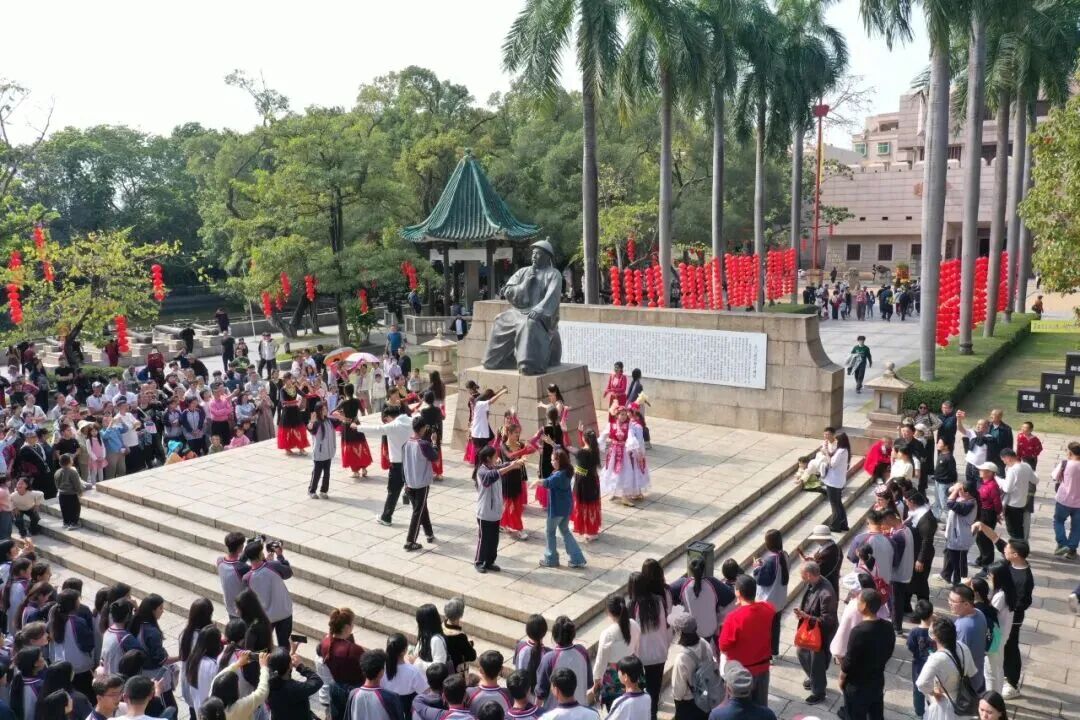 2月19日大年初三,鸦片战争博物馆迎来了一批特殊的客人——来自东莞市纺织服装学校内地新疆中职班的学生及部分新疆家长共220余人。他们走进林则徐销烟旧址,开展“博物馆里过大年”春节研学活动,在感受中国近代史开篇地深厚底蕴的同时,以热情的民族舞蹈为博物馆增添了别样的节日氛围。