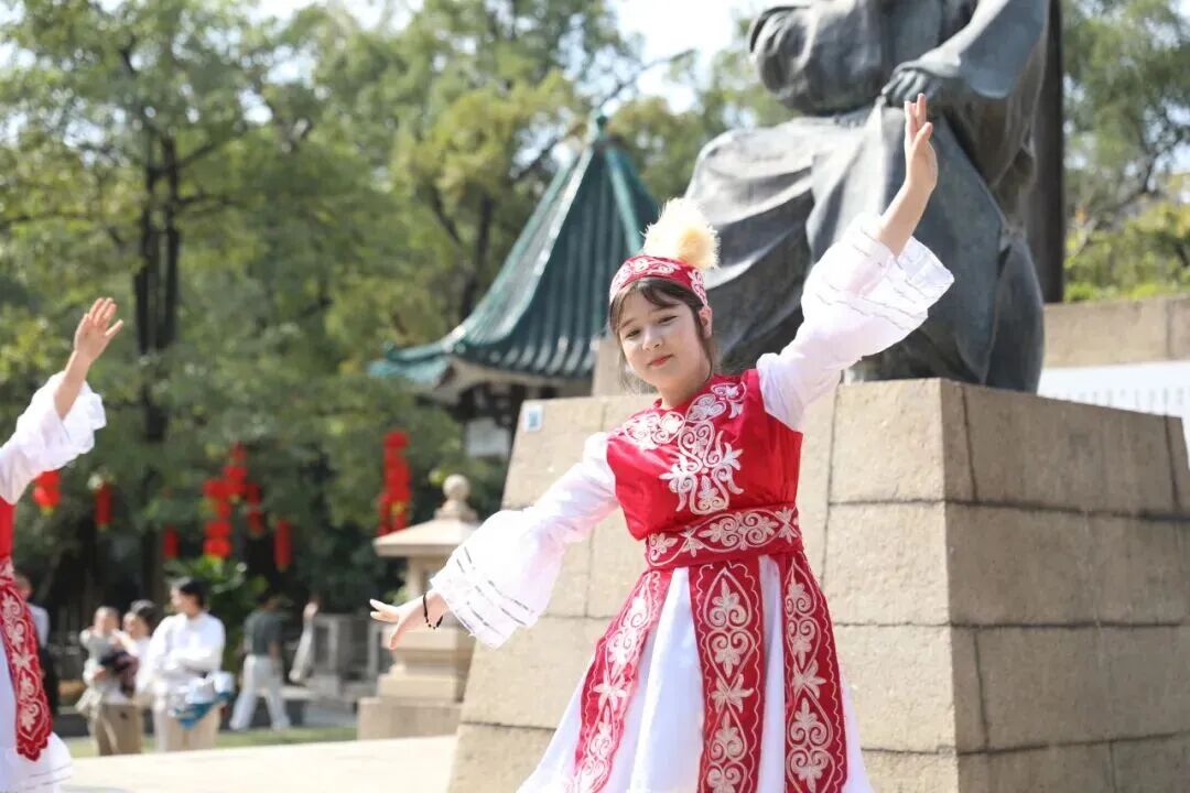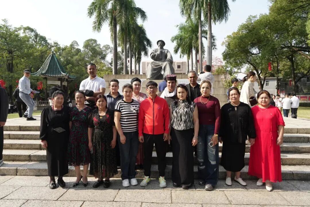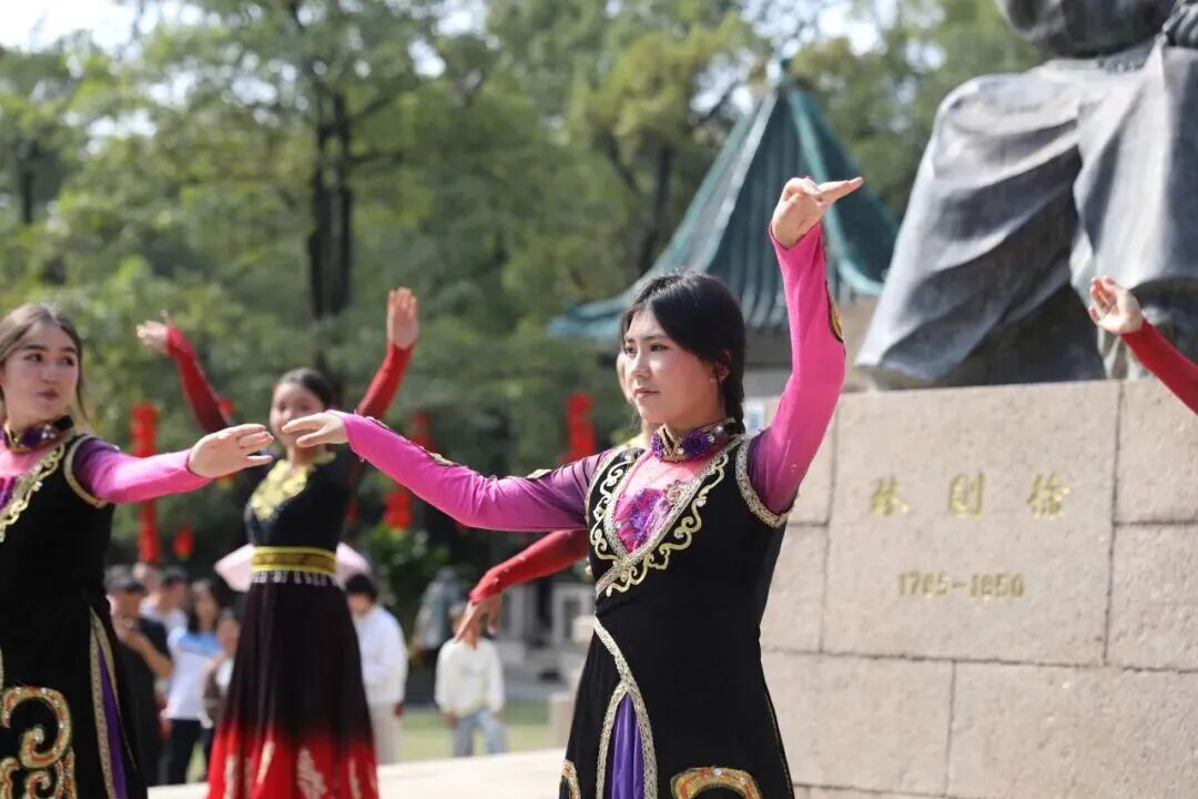 参观结束后,博物馆陈列楼门前的小广场和林则徐铜像前顿时成为欢乐的海洋。身着节日盛装的新疆学生们翩翩起舞,献上一段段充满民族风情的舞蹈。欢快的节奏、优美的舞姿迅速点燃现场气氛,围观的市民游客越来越多,不少人不由自主地加入其中,共同起舞。博物馆里喜气洋洋,掌声与欢笑声交织,浓浓的年味在民族交融的暖意中升腾。