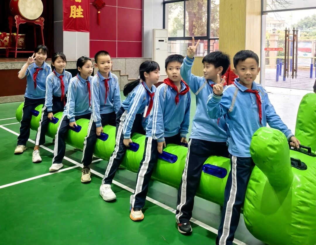 趣味赛场之上,欢乐相伴。厚街镇各校创新开展形式多样的趣味项目,跳绳、拔河、袋鼠跳轮番登场,欢腾跳跃间尽显少年活力;东莞外国语学校小学部举办足球趣味赛,设置团队运球接力、定点踢准等环节,让孩子们在游戏中感受足球魅力,在协作中收获友谊;塘厦金桂园学校“班超”活动中,拔河、毛毛虫竞速、丢手绢等项目联动,班主任与学生并肩作战,校园内充满温暖与生机。石排镇中心小学举办首届跳绳“班超”,全员参与、全员竞技,在跃动中锤炼学生顽强拼搏的意志。