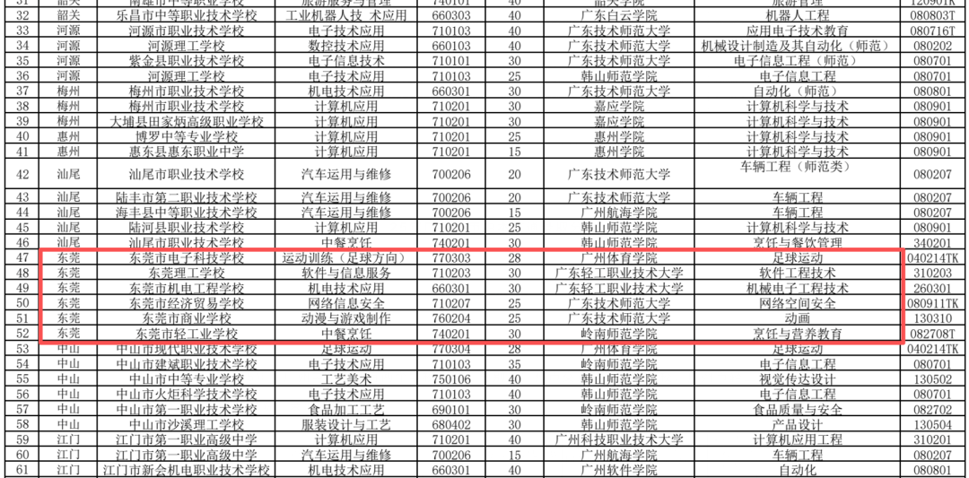 东莞市经济贸易学校“网络信息安全”专业对接广东技术师范大学“网络空间安全”专业,招生25人;