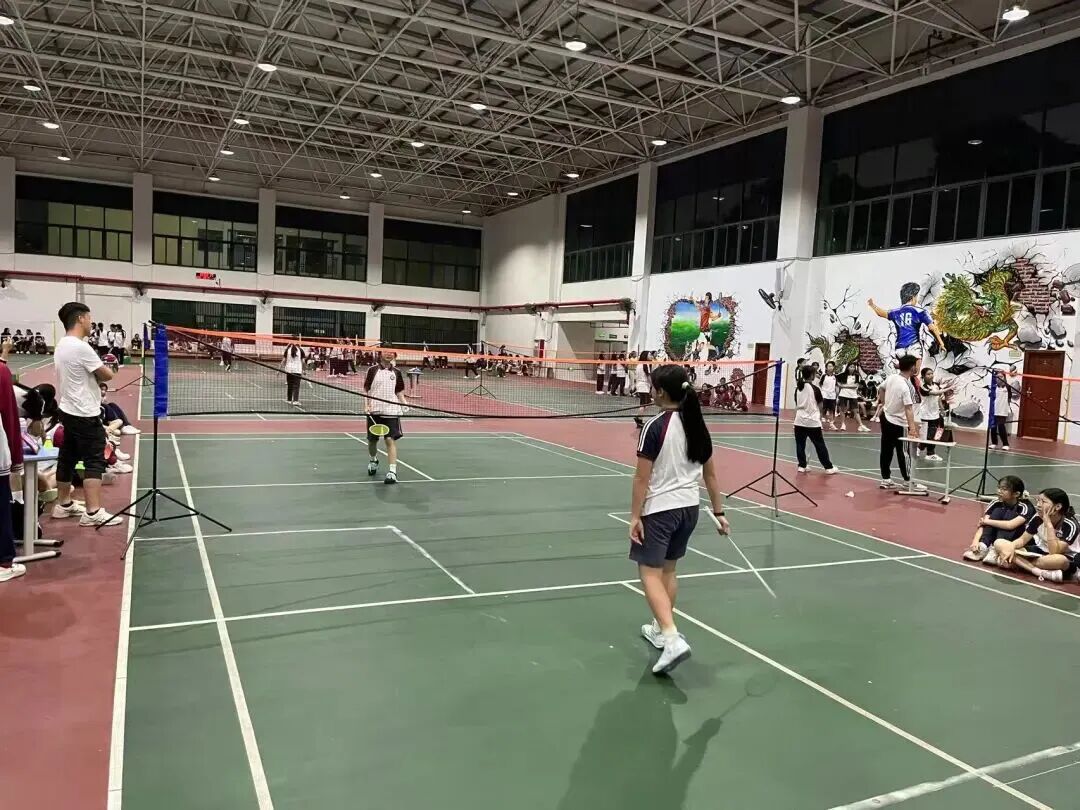 佳美实验学校创新举办“班超”中小衔接篮球、羽毛球联谊赛,面向六、七年级学生,打破年级界限组建11支跨年级联队。篮球赛场采用“3+2”固定搭档模式,羽毛球赛场设置跨年级双打组合。六年级学生提前感受初中氛围,七年级学生展现引领担当,体育成为中小衔接最柔和的润滑剂。