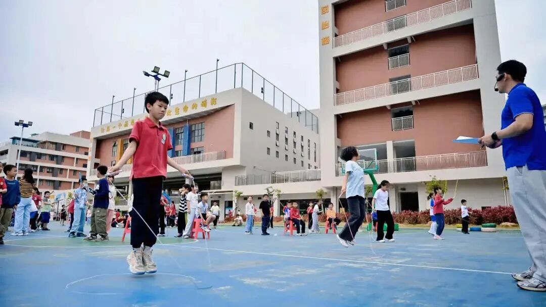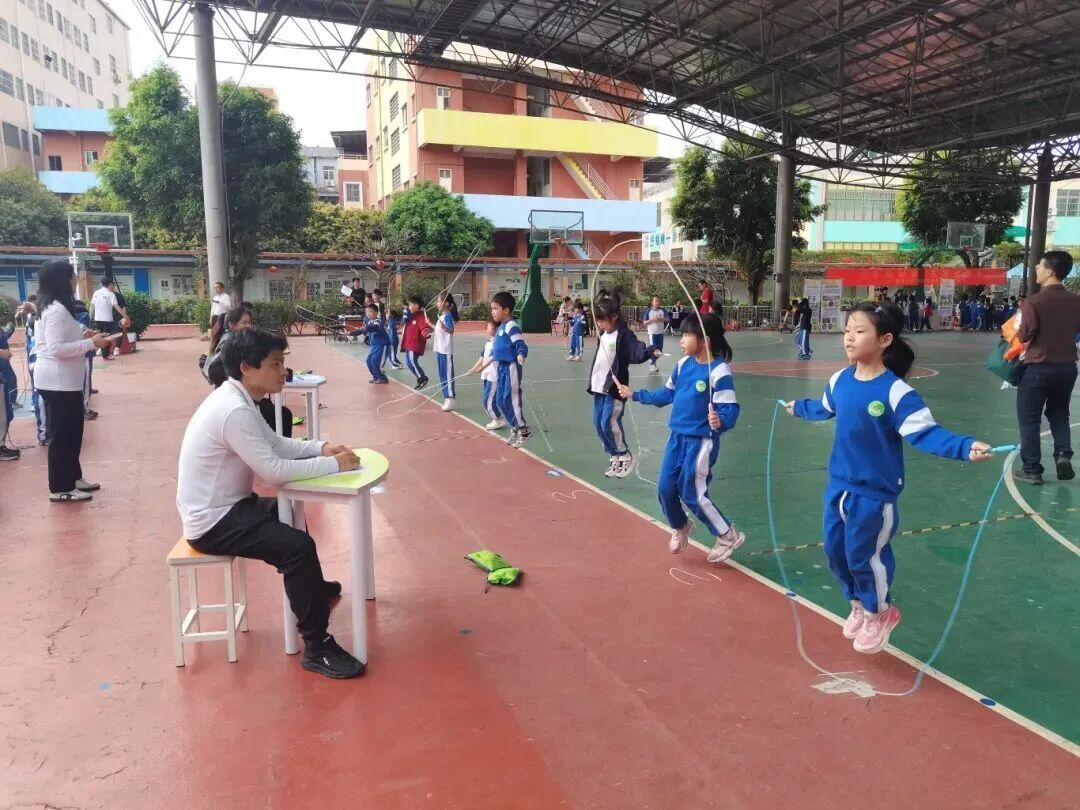 黄草朗小学跳绳联赛突出一个“细”字。学校精心选拔学生担任计数员,开展计数器使用专项培训,从按键操作到实操演练逐一过关。全校设5个比赛场区,教师统一发令、同步推进。哨声响起,各班运动员轻盈跳跃、飞速摇绳,用行动诠释“更快、更高、更强”的体育精神。这种“把赛事办成课程”的做法,既保障了公平公正,又锻炼了学生的组织能力与责任感。