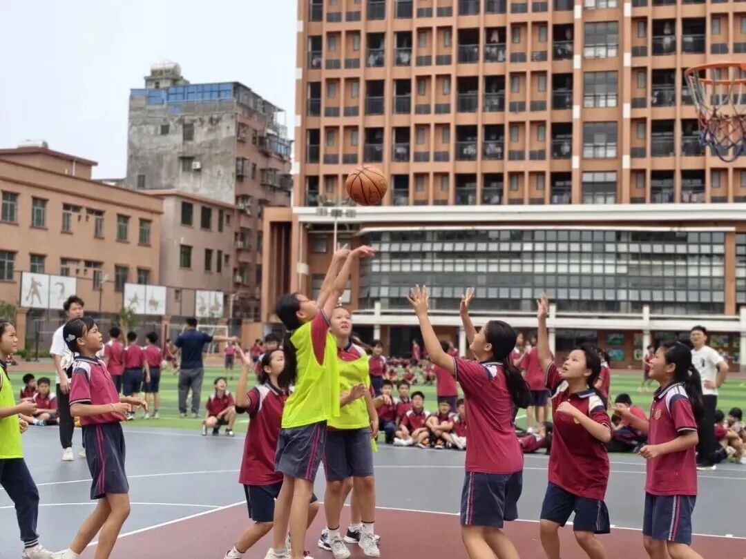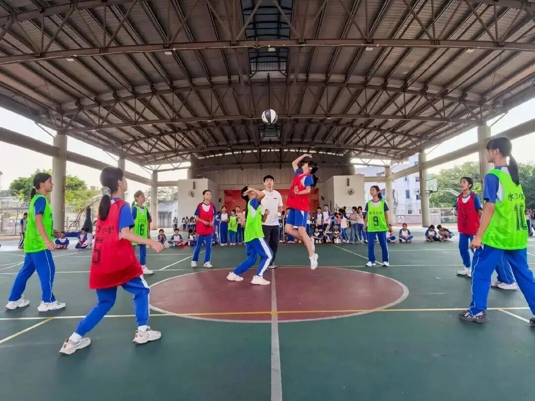 水口小学以“凝心聚班,超越自我”为主题,设置分层篮球赛事。一、二年级进行原地运球与接力比赛;三、四年级开展3对3半场对抗;五、六年级上演男女轮战的5对5全场厮杀。赛场上,低年级学生屏息凝神、稳稳拍球,高年级球员配合默契、攻防有序。场边啦啦队呐喊助威,老师悉心鼓励,小小篮球凝聚起班级的强大向心力。