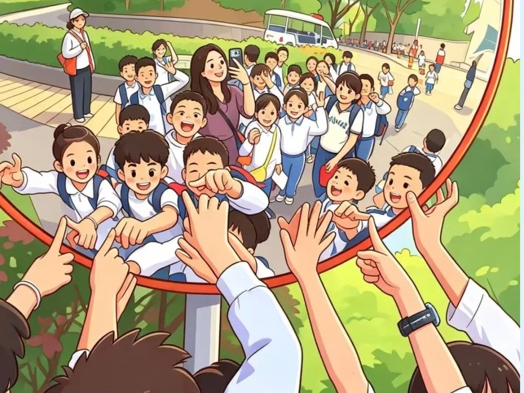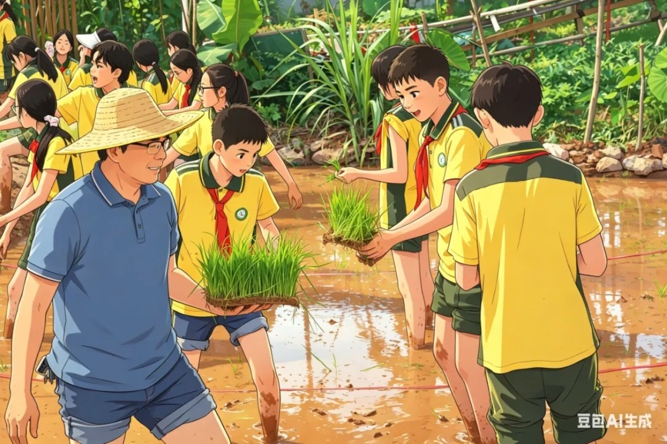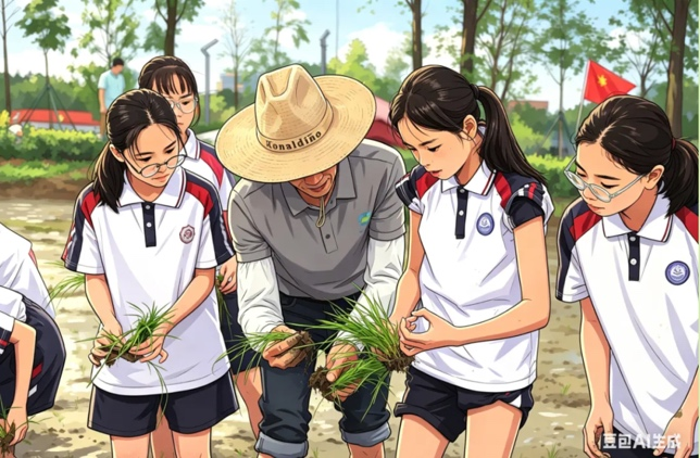 塘厦水霖学校、东城启元学校的孩子们,把研学合照变成科幻风、童趣风的画面,有的像动画片里的场景,孩子们看了都忍不住欢呼。万江第五小学学生完成叶贴画创作后,用 AI生图美化作品。谢岗镇中心小学的孩子们更有创意,在田间插秧劳动后,用AI把沾满泥土的合照变成创意漫画,记录下劳动的快乐和春日的美好。