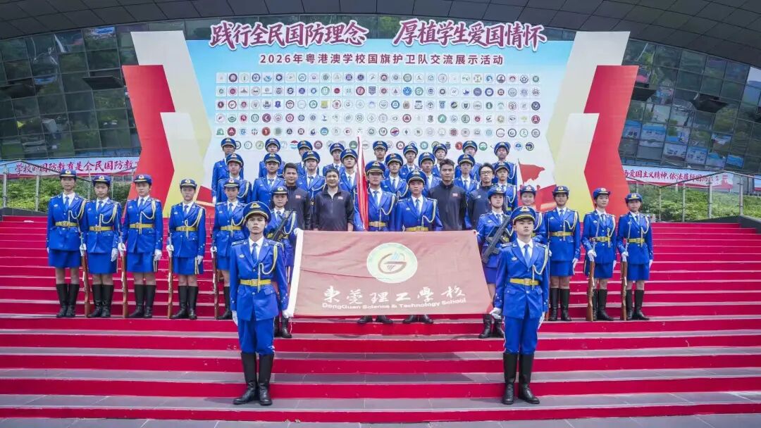 4月26日,2026年粤港澳学校国旗护卫队交流展示活动高中阶段组赛事在佛山大学仙溪校区落下帷幕。东莞理工学校、东莞市机电工程学校两支国旗护卫队在全省激烈角逐中分别取得高中阶段组总分第1名和第4名的好成绩,双双斩获省一等奖(高中阶段组全省共7个一等奖),用优异的表现擦亮东莞国防教育名片,彰显新时代莞邑青年的使命与担当。