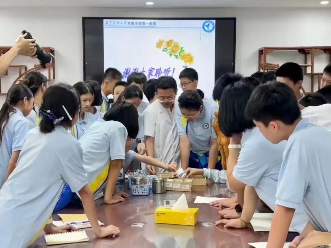 10月15日,塘厦第二初级中学与广东医科大学附属第一医院国医院携手,成功举办了一期以“神奇的中医”为主题的研学实践活动,将“每周半天”的课堂延伸到了拥有千年智慧的中医药文化殿堂。本次活动充分利用被列为“中医药文化特色校外活动场所”的国医院资源,通过“理论+体验+观察”的模式,让学生们在社会大课堂中增长见识,深化对中华优秀传统文化的认知。