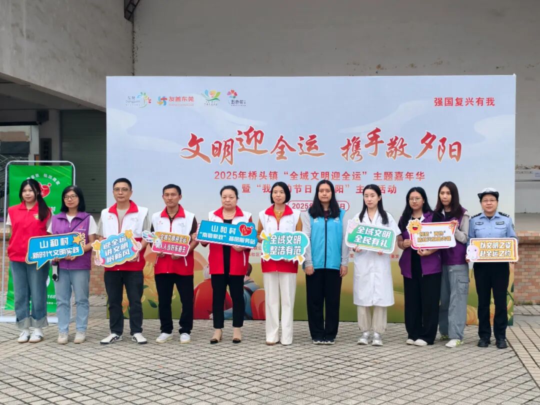 岁岁重阳,今又重阳;全运将至,文明同行。在重阳节来临之际,桥头镇精心策划并开展了一系列丰富多彩的“敬老爱老”主题活动,“全域文明迎全运”主题嘉年华将文明宣传与便民服务相结合,大洲社区以“欢歌+敬老宴”的传统方式凝聚邻里温情,两场活动从不同维度传承尊老敬老美德,为即将到来的第十五届全运会营造文明和谐的社会氛围。