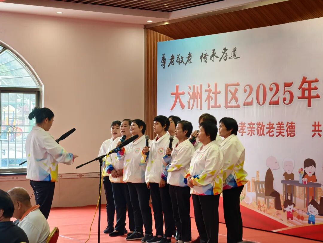 活动伊始,社区首先对长期以来倾情支持老龄事业的爱心企业与个人进行了表彰,颁发爱心牌匾,以感谢他们慷慨无私的奉献。随后,文艺表演在掌声中拉开帷幕。 桥头镇老人合唱队与大洲夕阳乐歌唱队精神矍铄,相继献上了《大中国》《母亲》等经典曲目,他们用饱满的热情和昂扬的歌声,展现了新时代老年人积极向上的精神风貌和对生活的无限热爱。
