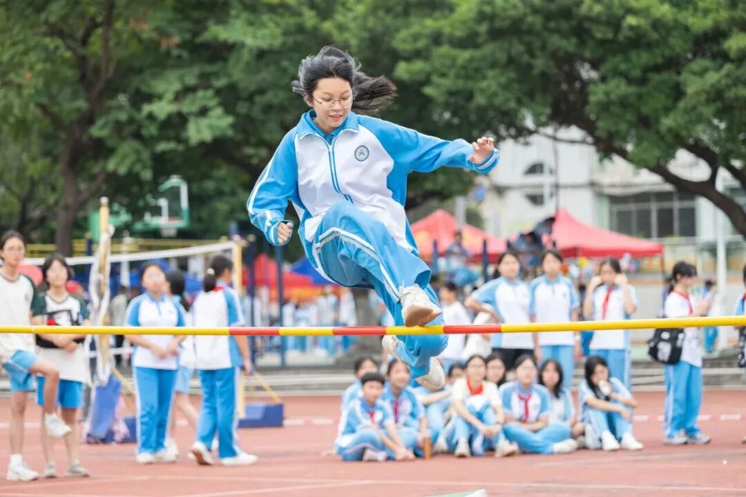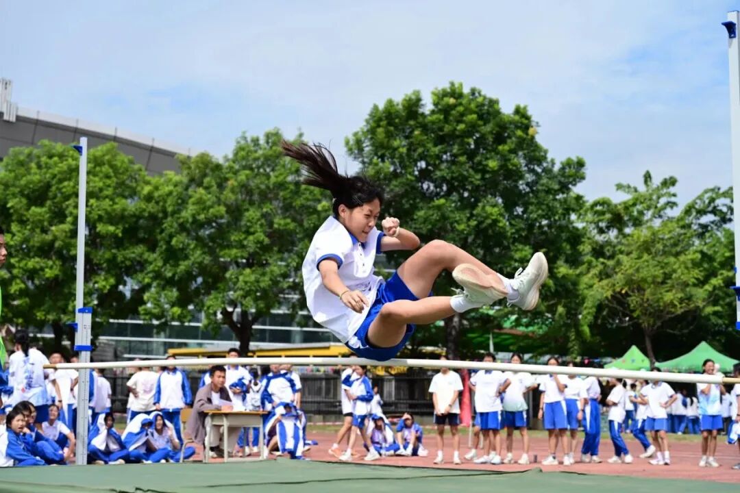 在东莞市第一中学的跳高赛区,运动员们目光坚定,助跑、起跳、腾空、过杆,身体在空中划出一道道优美的弧线。每一次横杆高度的提升,都是对自我极限的一次勇敢挑战。