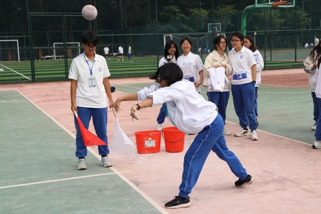 东莞实验中学的“旋风跑”“滚雪球”“零食争夺战”等系列趣味项目轮番上演,竞技与趣味完美融合,操场秒变欢乐的海洋,欢呼声、笑声、加油声此起彼伏,同学们在轻松愉快的氛围中增进了情谊,在团结协作中锤炼意志。