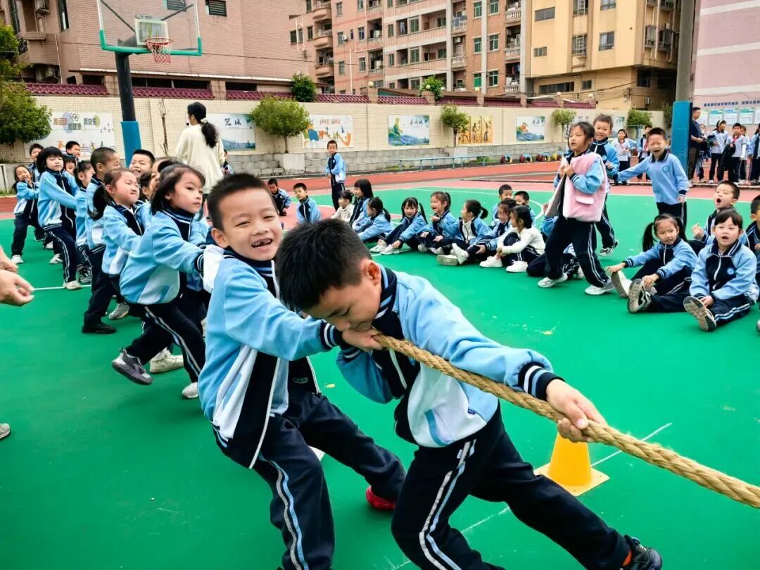 哨响瞬间,厚街镇白濠小学的孩子们齐声后仰,身体几乎贴向地面。班主任在场边挥动双臂,与全班同学的加油声汇成一股劲,绳索在中线来回颤抖,胜负就在下一秒!