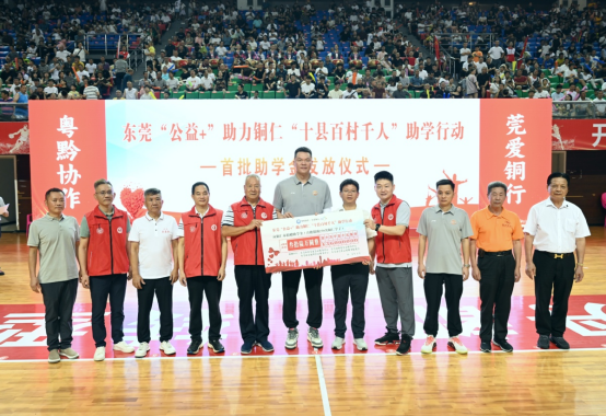 篮球明星朱芳雨作为“公益先锋”,领衔东莞助学团队将“公益+”助力铜仁“十县百村千人”助学行动36万元爱心助学款温暖送达270名铜仁困境学子的手中