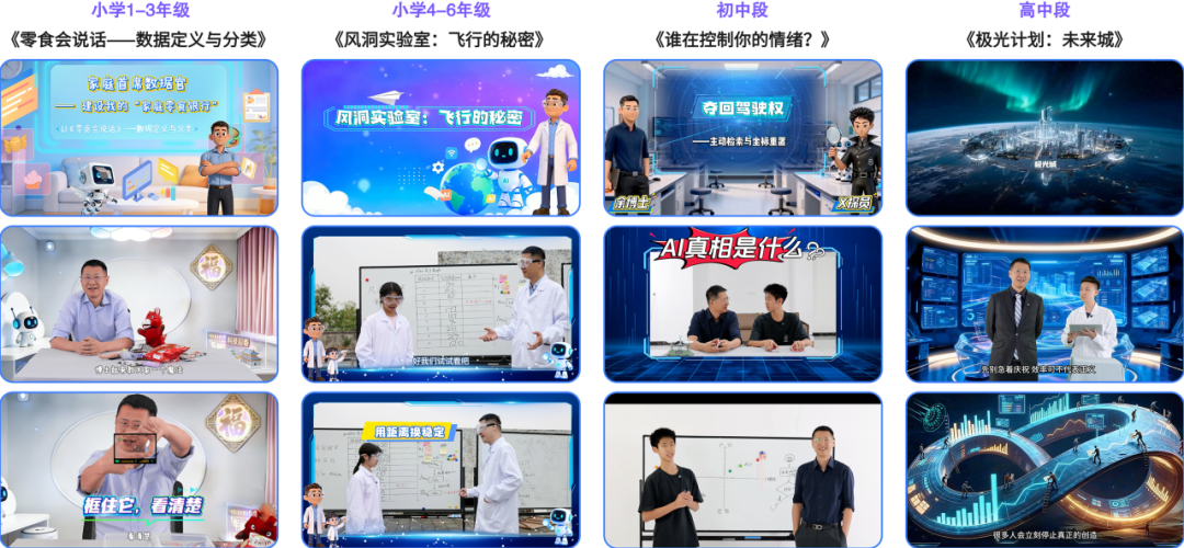 由知名科学家余旸教授领衔设计,推出适合不同学段的四套游戏化、生活化AI微课程(每套5节课),帮助学生理解人工智能的基本逻辑与应用边界。