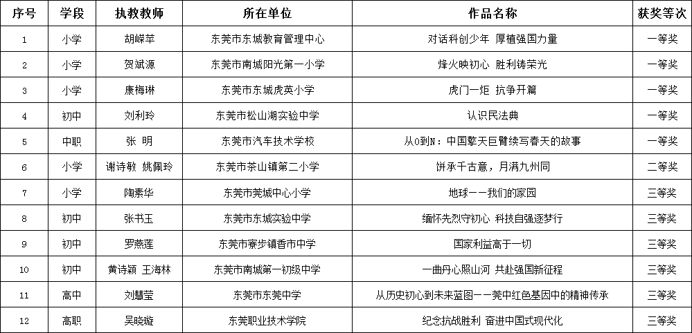 2025年广东省大中小学思政课一体化教学展示交流优秀教育案例(东莞)