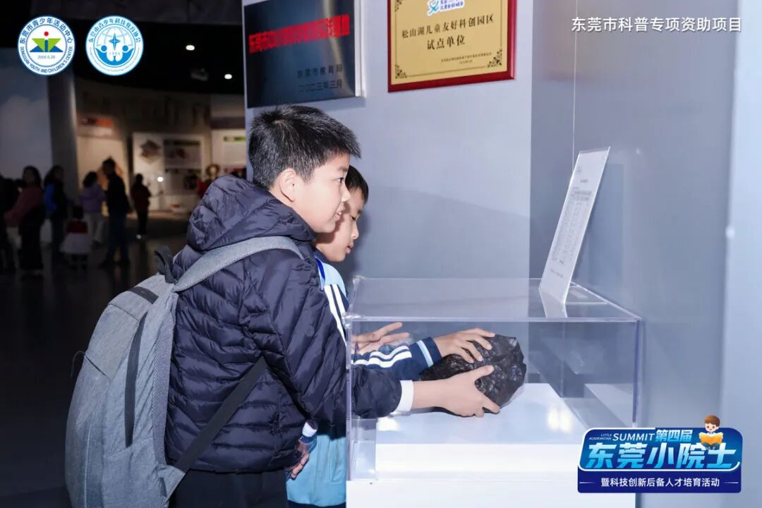随后,学生们参观了研究所展厅与材料博物馆。华为合作研发的坚韧非晶材料手机边框、代表绿色能源方向的新能源电池软包等展品引发赞叹;来自非洲马里的陨石展品吸引大家亲手触摸,在工作人员讲解中感受宇宙奥秘。